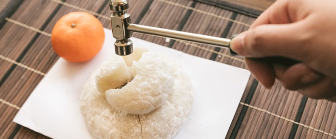 There is a certain manner to cut the Kagamimochi, that is to cut it without using knife. To aim one's knife at it is impolite since the power of Toshigami dwells it. In addition, cutting it with knife suggests Seppuku(Harakiri) which is a suicide by ritual disembowelment practiced by Japanese warrior called Samurai to avoid a disgraceful dead. Therefore, people cut or break Kagamimochi by hammer or hand.